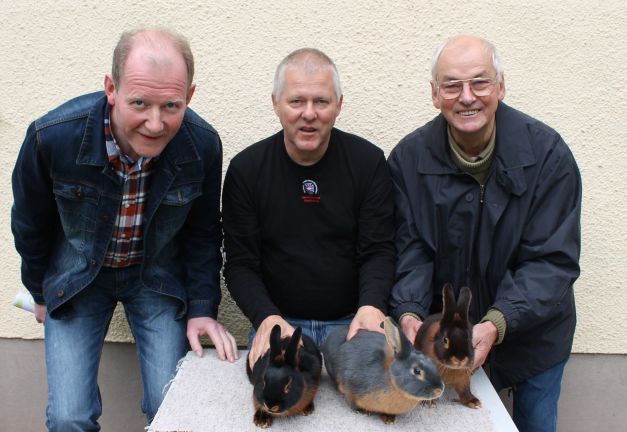 Die Ausstellungsleiter Friedel Jäger, Gerhard Bein (Vorsitzender des Loh- und Weißgrannen-Clubs Kurhessen) und Rudolf Haake (Vorsitzender des KTZV 1912 Hofgeismar) dankten den zahlreichen Austellerinnen und Austellern, dass sie ihnen ihre Tiere anvertraut und hier in Hofgeismar den neun Preisrichtern zur Bewertung sowie einem