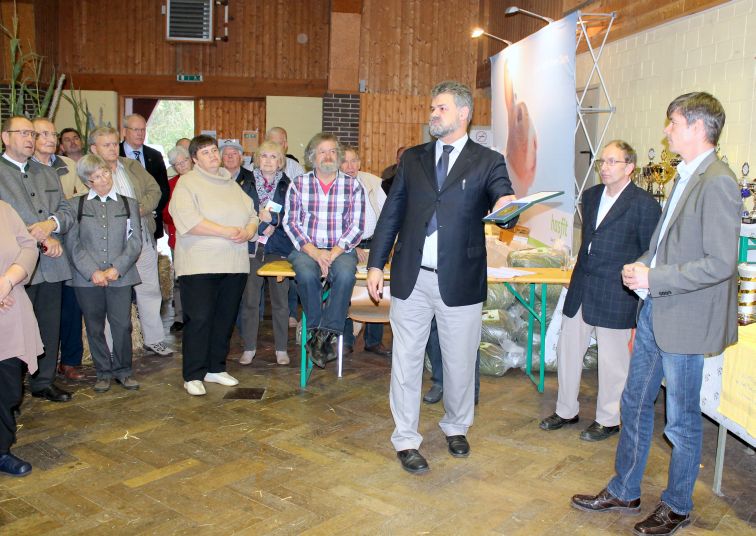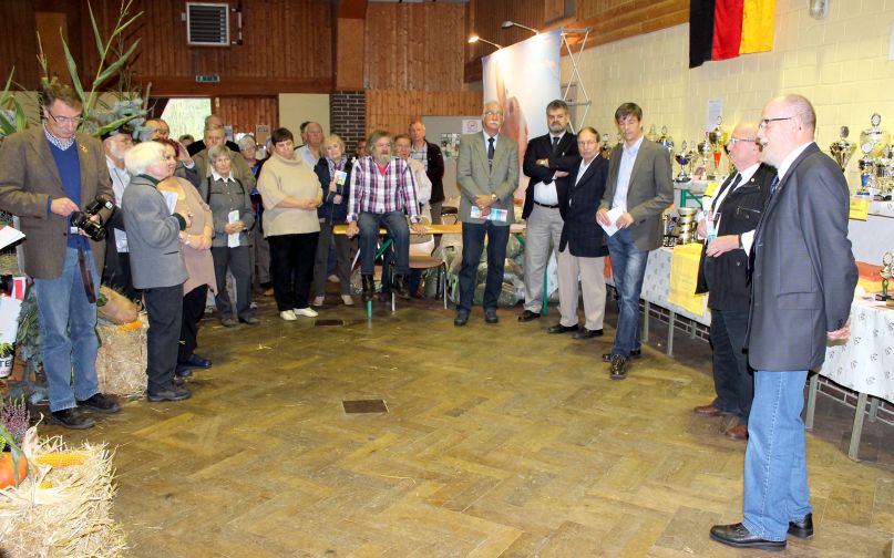 Dr. Thomas Schneider, Sprecher der AG der Loh-Clubs im ZDRK, hob hervor, dass einige Loh-Freunde als Aussteller und Besucher dieser Schau lange Anreisen von einigen hundert Kilometern auf sich nehmen, um hier in Hofgeismar mit gleichgesinnten und naturverbundenen Freunden eine lehrreiche und auch gemütliche Zeit zu verbringen. Bei diesen Vergleichsschauen herrsche immer das Gefühl vor, mit vielen Gleichgesinnten in einer europäischen Familie zusammen zu sein. Er dankte dem Team der Ausstellungsleitung und stellte heraus, dass Friedel Jäger nur für Planung und Ausrichtung dieser Schau zwei Jahre gelebt habe. Gleichzeitig gratulierte er dem Loh- und Weißgrannen-Club Kurhessen zum