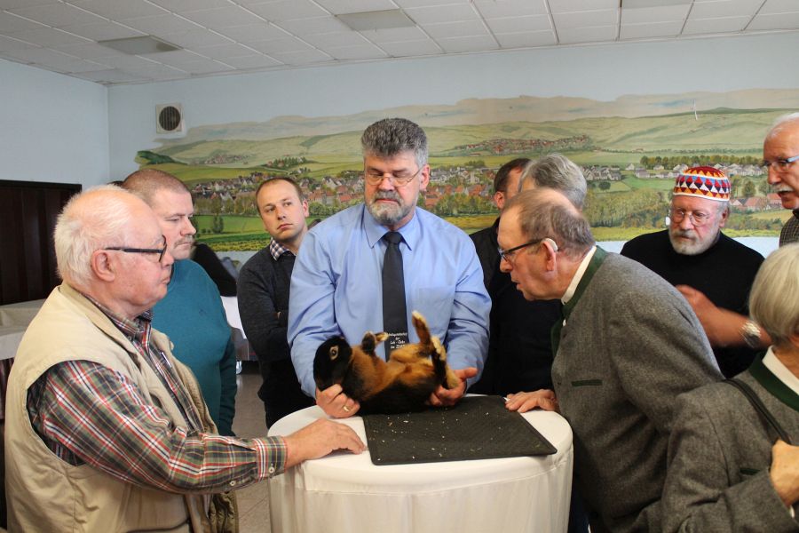 Heinrich Geisel vom Loh-Club Kurhessen berichtete stellvertretend für den verhinderten Rassesprecher für Lohkaninchen fehfarbig, Günter Vater, über den Leistungsstand und über die Bewertung der Tiere bei der 26. Bundes-Rammlerschau im Februar in Erfurt und stellte fest, dass die dort ausgestellten Tiere weitestgehend den zurzeit vorhandenen Zuchtstand wiederspiegelten. Für die Zukunft sollte auch der Gewichtsrahmen mehr in den Focus bei der Auswahl der Zuchttiere gelegt werden. Gerade bei einer praktizierten Linienzucht sei von Generation zu Generation mit Gewichtsreduzierung zu rechnen. In der Position 2 hätten über die Hälfte der Tiere keine 19,0 Punkte erreicht. Abzüge gab es wegen eckiger Hinterpartien, schmaler Schulter, wenig Stand und leicht gestreckter Typ. Weiter wurde angemerkt, dass die Deckfarbe bei einigen Tieren nicht dunkler werden sollte. Der Schleier sollte gleichmäßiger ausgeprägt sein. Einige Tiere hätten eine etwas matte und absetzende Unterfarbe bzw. eine angedeutete Zwischenfarbe gezeigt.