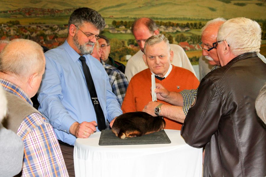 Thomas Mendrzik, Rassesprecher für die Lohkaninchen schwarz, machte hier eine kritische Anmerkung zu den bei dieser Schau anwesenden Ausstellern bei dieser. Wenn die Diskussionen an den Käfigen intensiver seien als eine gemeinsame Tierbesprechung und diese auch nur zäh und improvisiert durchgeführt werde, dann laufe etwas schief und wenn hier nicht Gedanken und Meinungen ausgetauscht würden, schade man sich selbst. Von anderen Clubs könne man lernen, wie man es besser macht. Er rede hier auch von vielleicht gewünschten Nachbewertungen, wenn man ihm ein Spitzentier kommentarlos zur Tierbesprechung auf den Tisch setze. Er sage das jetzt mit deutlichen Worten, dass er hierfür nicht zur Verfügung stehe. In diesem Falle habe er die Vorzüge des Tieres herausgestellt ohne auf einen von außen nicht sichtbaren Fehler einzugehen. Er bedankte sich ausdrücklich bei Zuchtfreund Johann Biermann, mit dem er die Tierbesprechung der Lohkaninchen schwarz und blau durchgeführt habe.